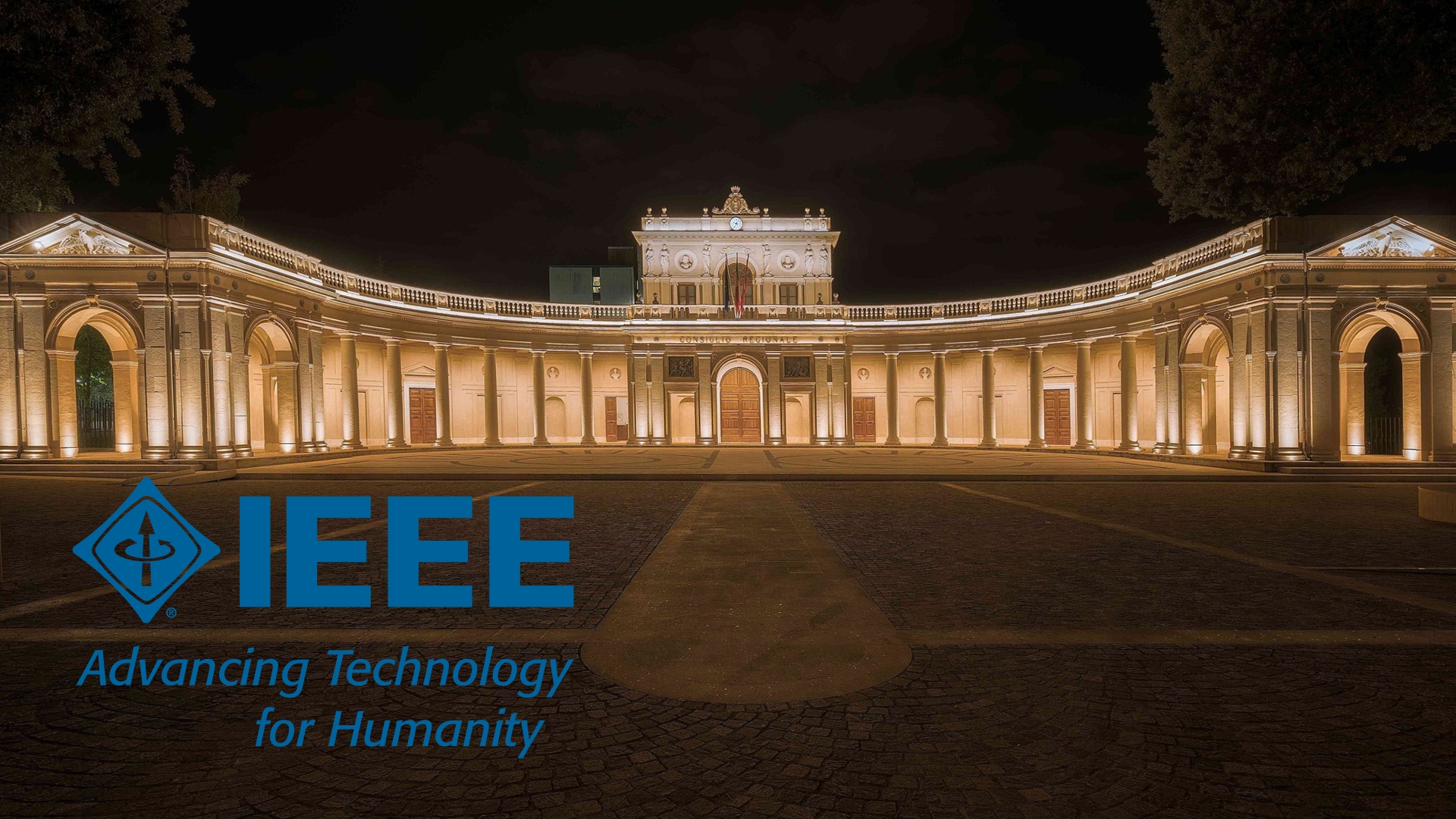 Image of the Palazzo dell’Emiciclo in Aquila with the logo of the IEEE